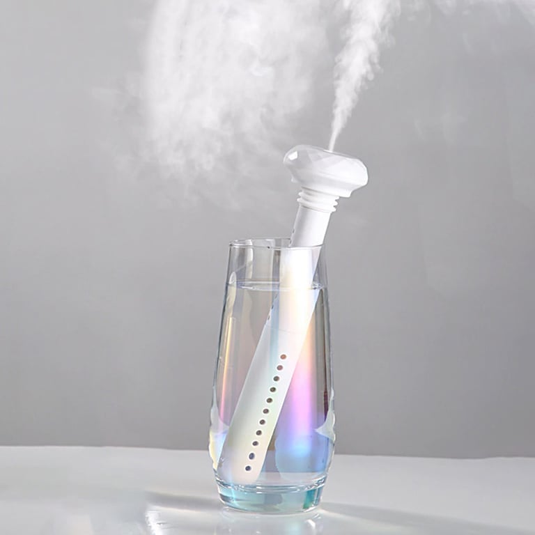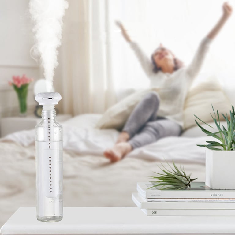 Humidificador práctico para usar en cualquier lugar gracias a la posibilidad de absorber agua de una botella. Se carga mediante USB.