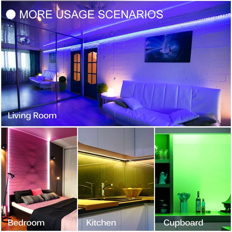 Práctica iluminación LED para complementar el espacio detrás de tu televisor. Es más agradable ver la televisión en una habitación ligeramente iluminada. Esto rompe el contraste que causa tensión en los ojos.