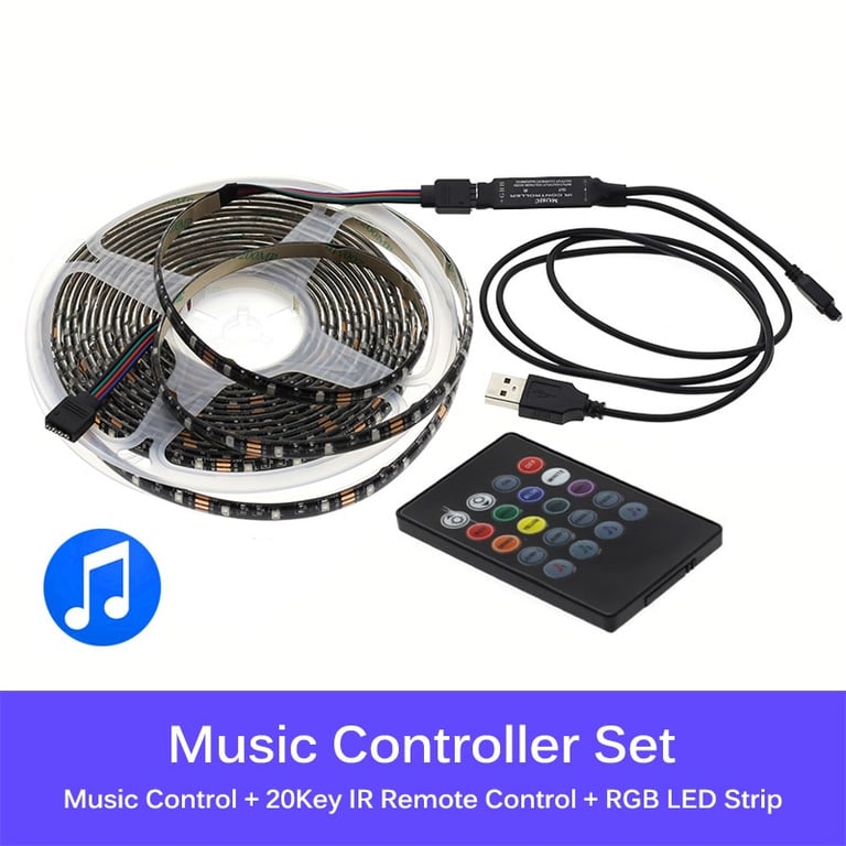 Contenido del paquete: 1 set (1x tira LED, 1x adaptador USB, 1x control remoto)