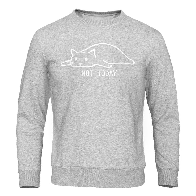 • – En la sudadera hay una impresión de un gato con la frase “Not today”.