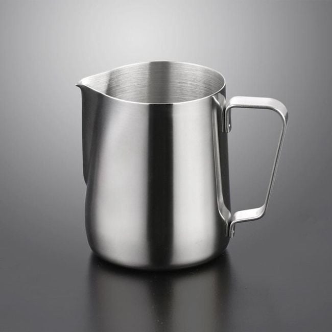 Jarra de acero inoxidable para leche.