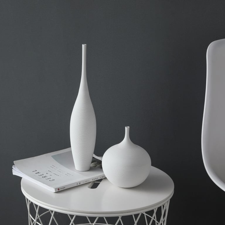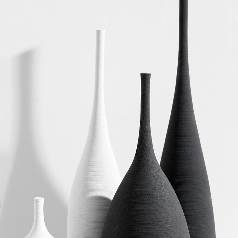 Jarrón de cerámica en forma ovalada en color blanco mate o negro.