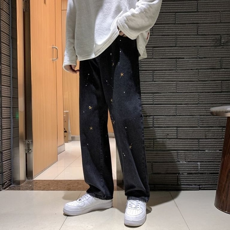 Jeans estilizados y holgados para hombre con bordados para cualquier ocasión.