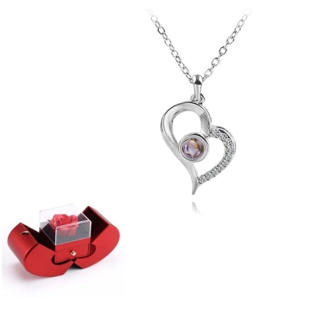 Joyero con rosa y collar - más variantes