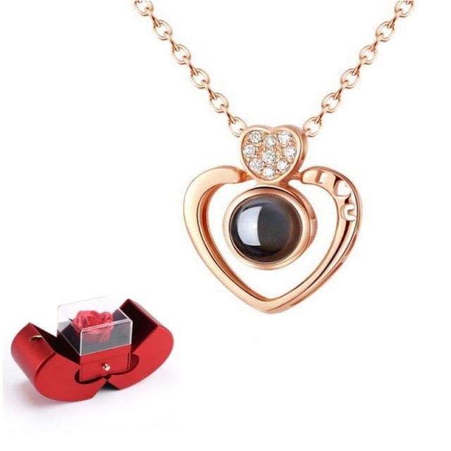 Joyero con rosa y collar - más variantes