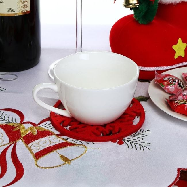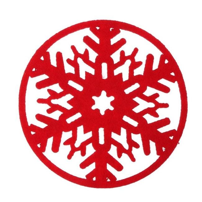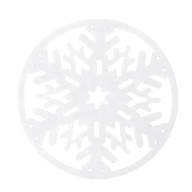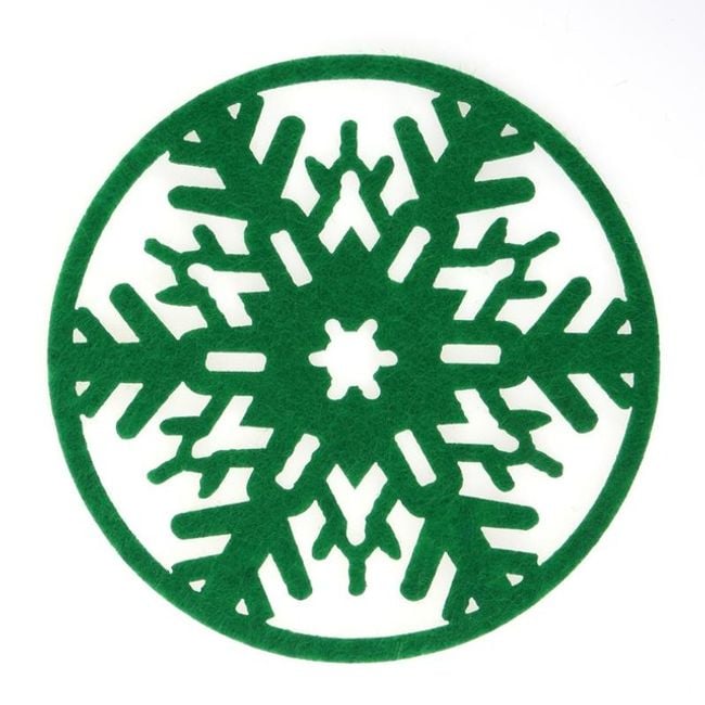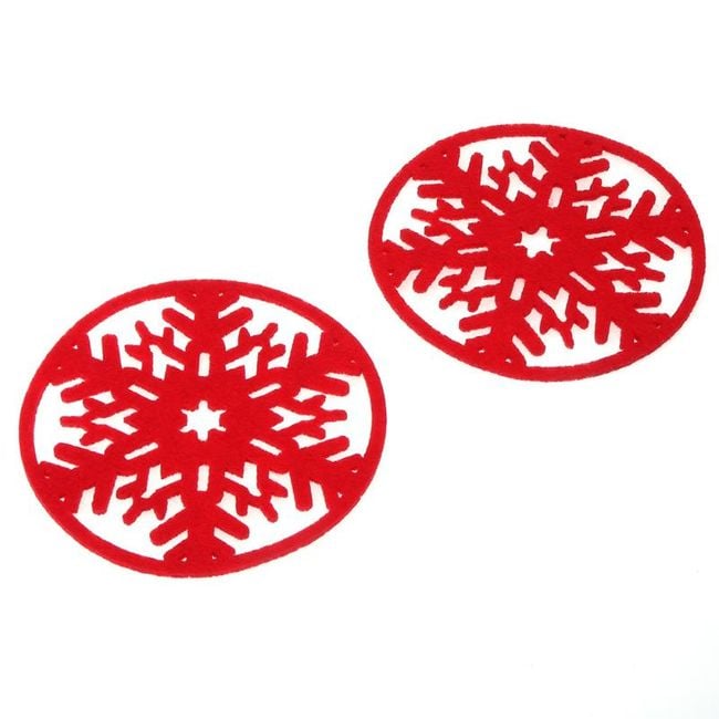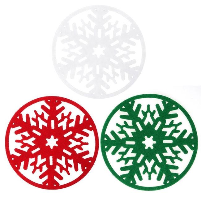 Juego de 10 posavasos de fieltro con diseño de copo de nieve en tres colores diferentes.