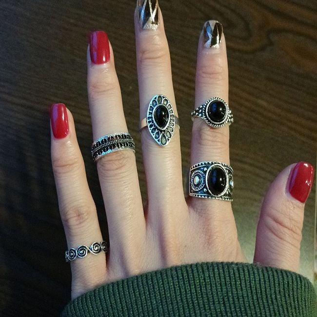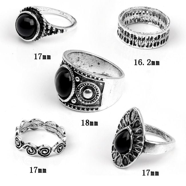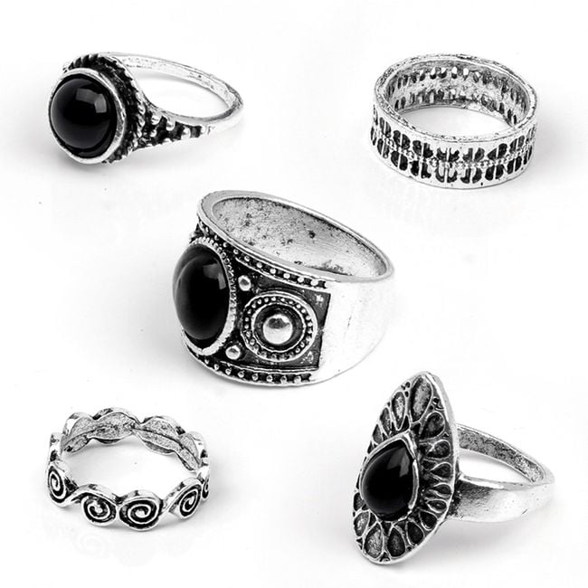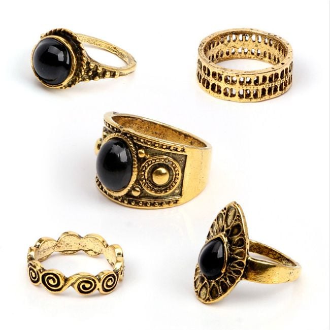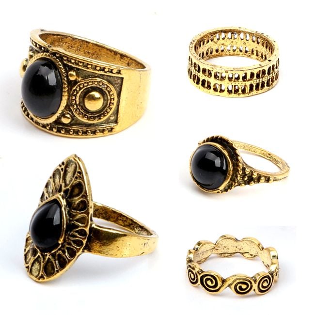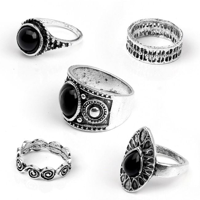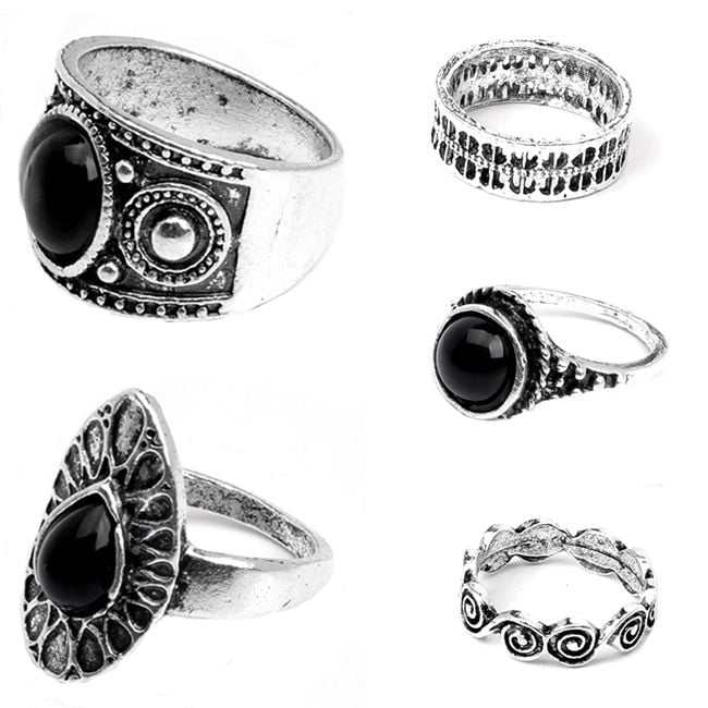Los anillos están bellamente elaborados y tres de ellos tienen una piedra negra.