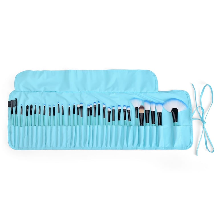 Juego de brochas de maquillaje. Con estas brochas, aplicar el maquillaje será fácil. Disponible en varios colores. Además, el paquete incluye un práctico estuche para las brochas.