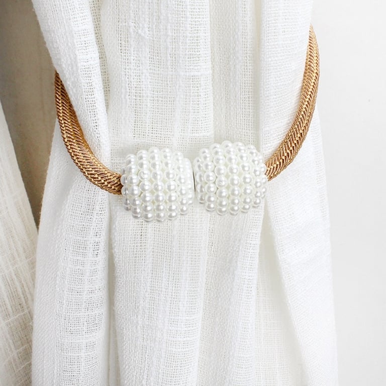 En ambos lados hay imanes, que están equipados con perlas, con los que se puede sujetar la cortina recogida.