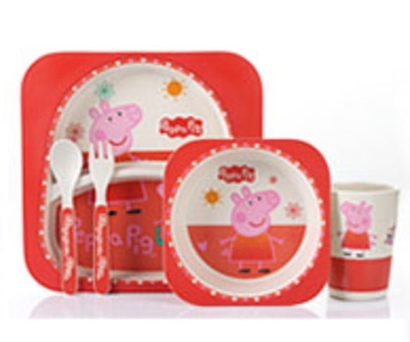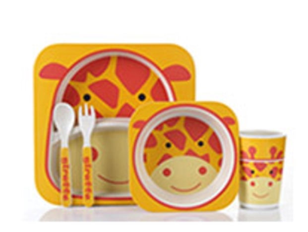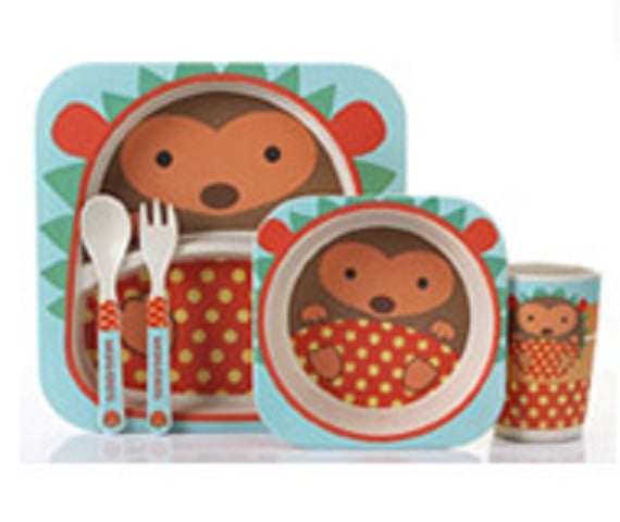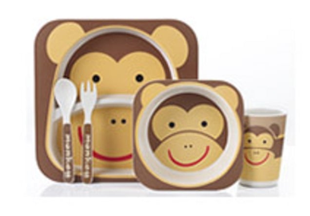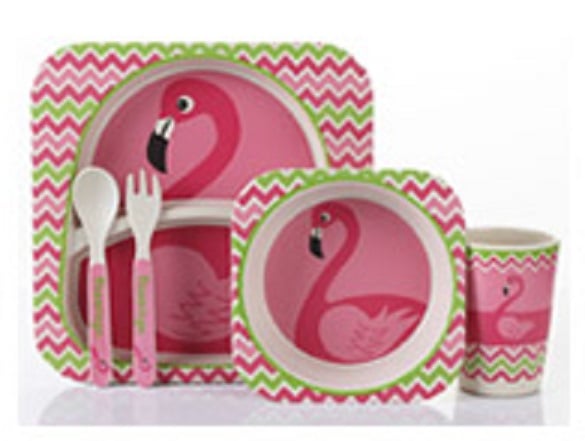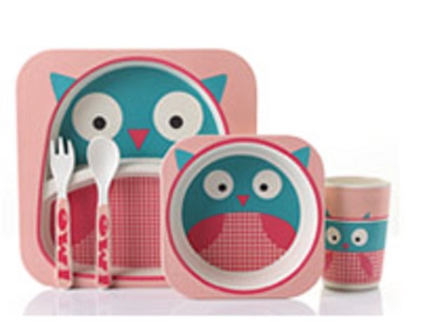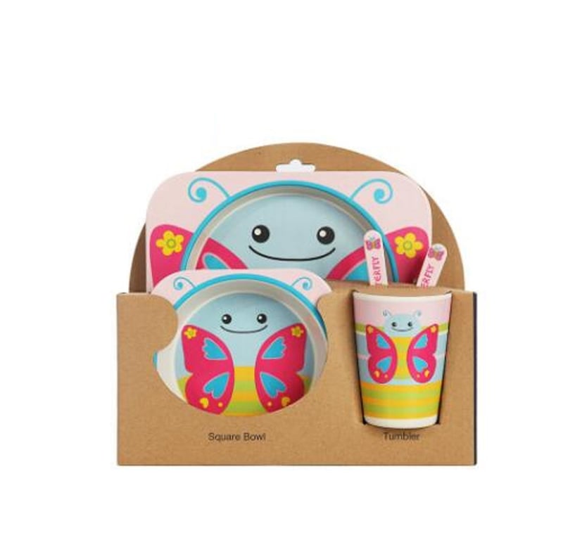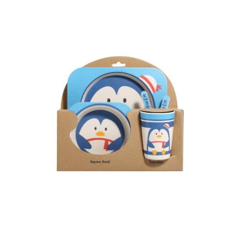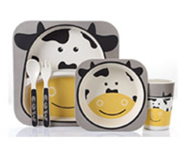 Este conjunto de comida para niños está hecho de fibra de bambú y consta de 5 piezas.
