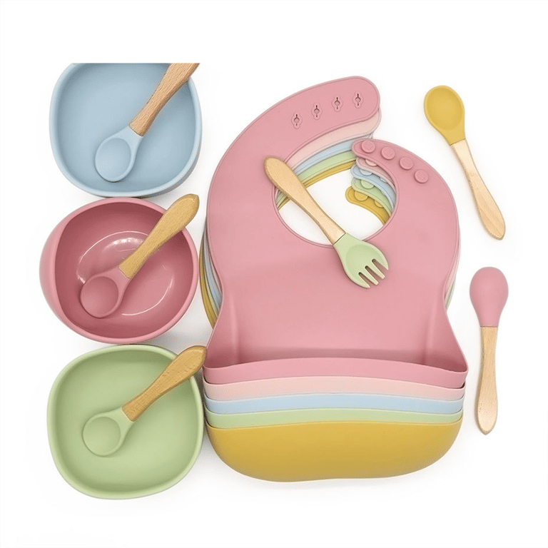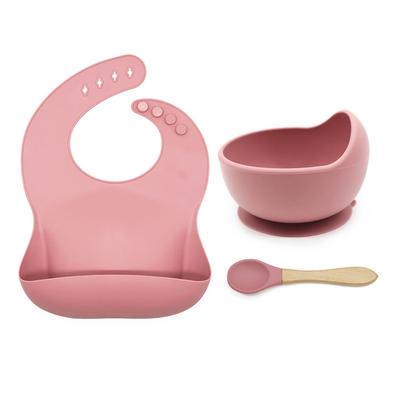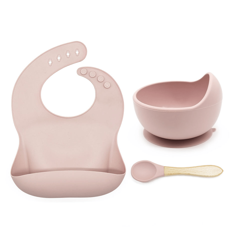 Set de comida de silicona para niños – babero + plato con ventosa y cuchara