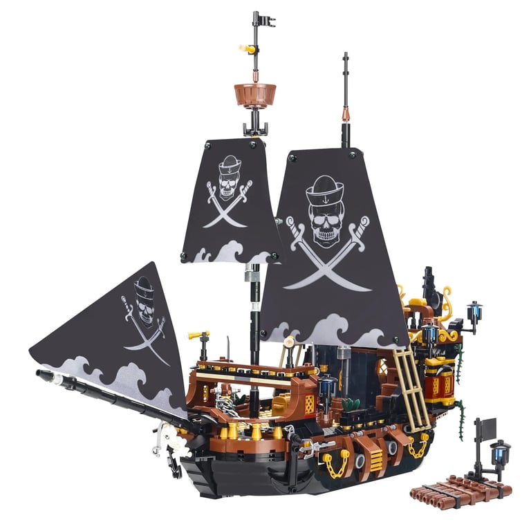 El set de construcción del barco pirata negro es compatible con los sets de Lego.