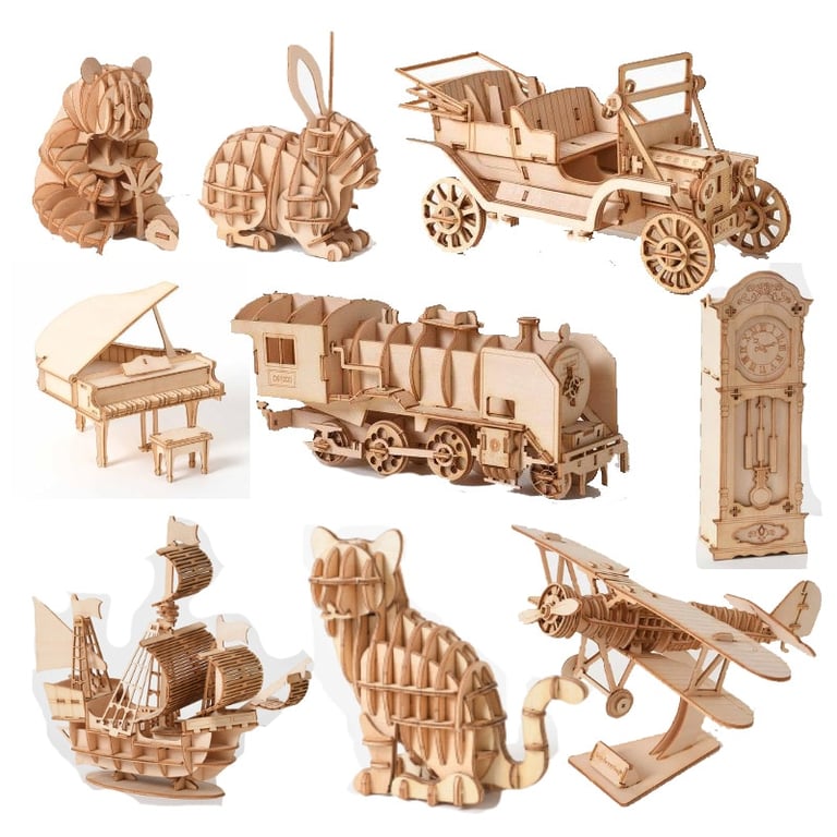 Juego de construcción creativo de madera 3D.