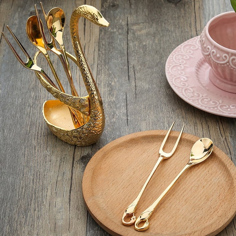 Juego de cubiertos con soporte en forma de cisne 7 piezas