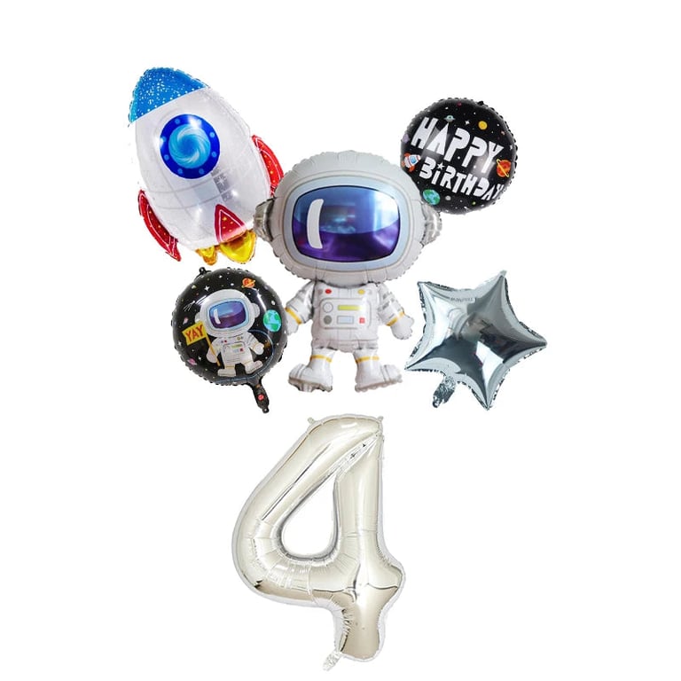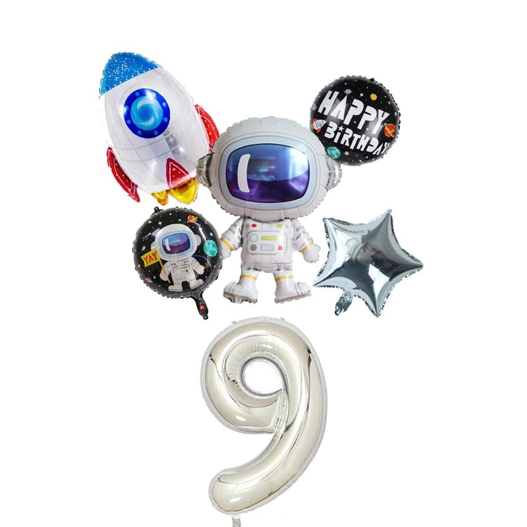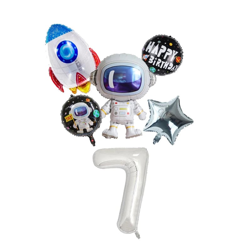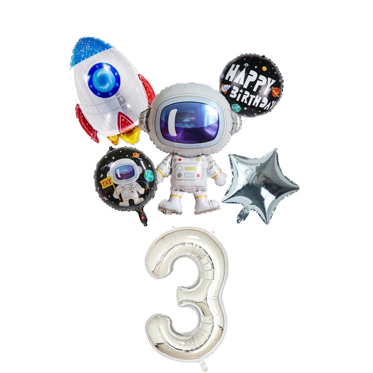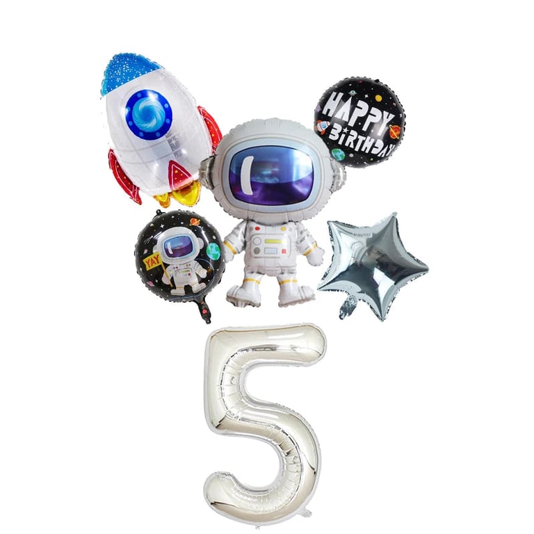 Conjunto de fiesta de cumpleaños con globos de astronauta.