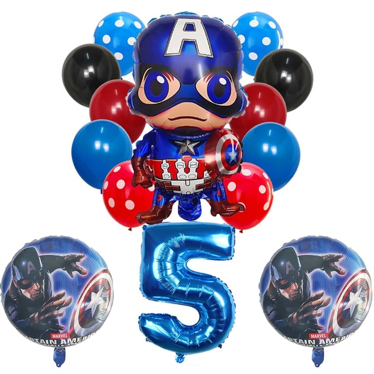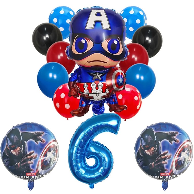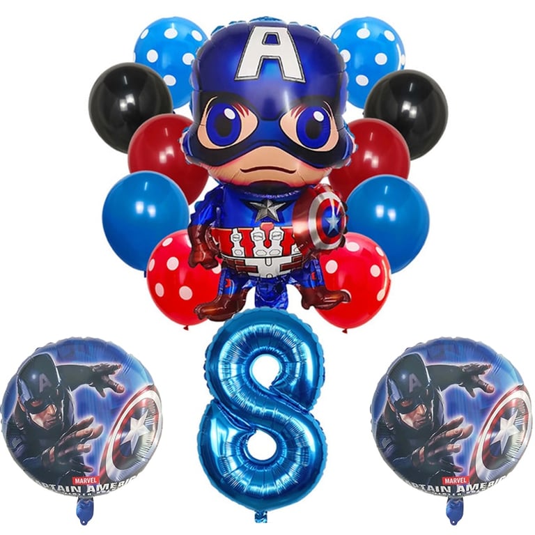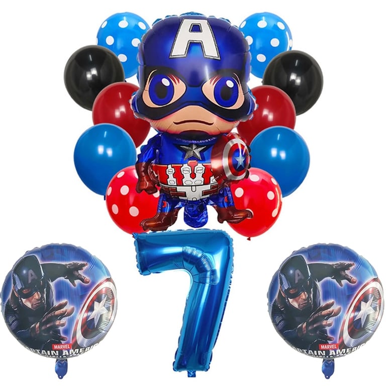 Set de globos inflables con número y superhéroe Capitán América 14 pcs