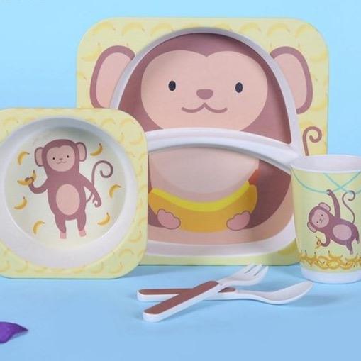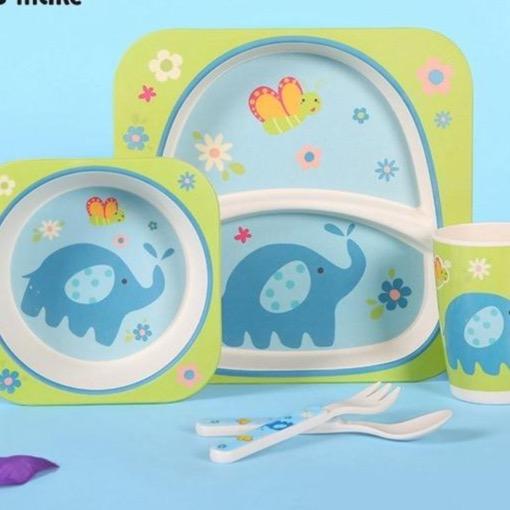 Juego de vajilla de bambú para niños. Bonitas imágenes infantiles, diferentes variantes para elegir.