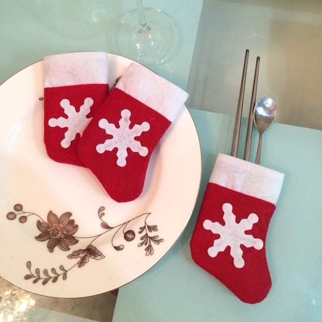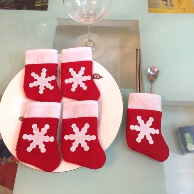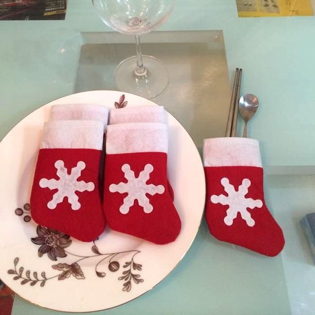 Prepara para tu familia y tus invitados una cena o comida navideña perfecta. La media también se puede colgar como decoración. El paquete contiene 12 mini medias para cubiertos.