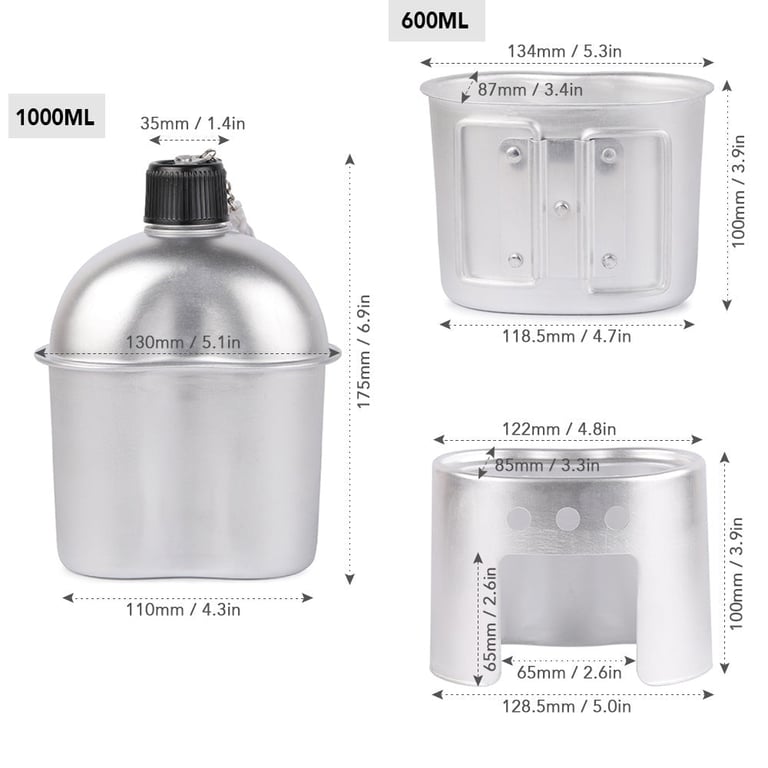 Conjunto de utensilios militares con funda.