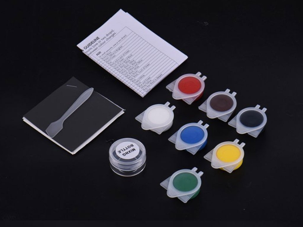 • Este kit incluye herramientas y colores que le permiten reparar diversos daños en productos de cuero –