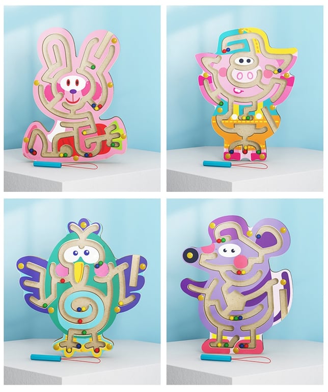 Labirinto de animales magnéticos de madera para niños