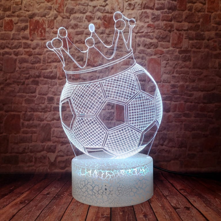 Una excelente lámpara de mesa en forma de balón de fútbol, que encantará a cualquier futbolista o aficionado al fútbol. La lámpara crea una perfecta ilusión 3D, parece como si el balón apareciera justo delante de ti. En realidad, la parte superior de la lámpara es plana y está iluminada, lo que genera esta ilusión.