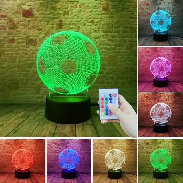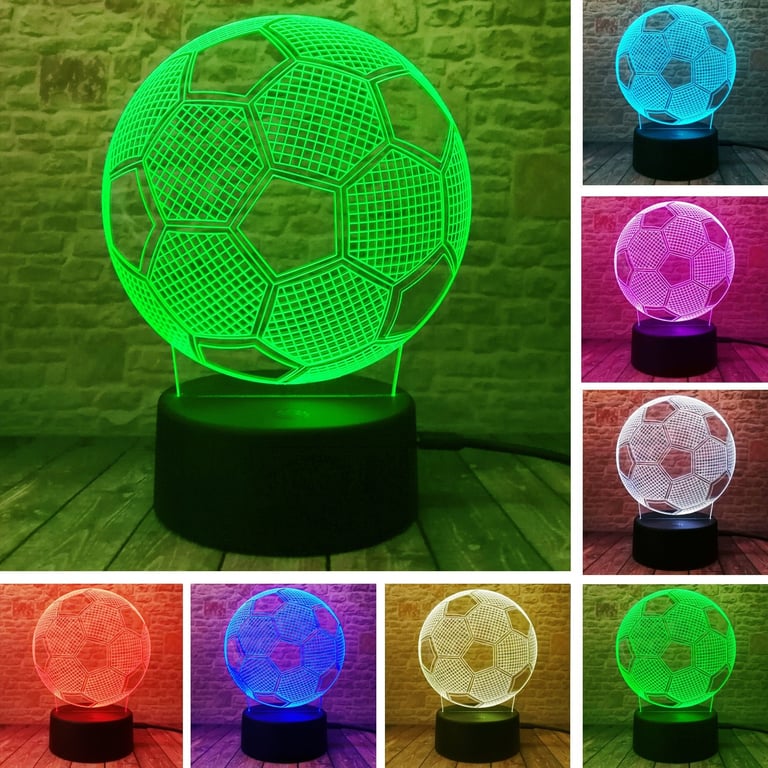 Lámpara de mesa genial en forma de balón de fútbol, que encantará a cualquier futbolista o aficionado al fútbol. La lámpara crea una perfecta ilusión 3D, por lo que parece que el balón aparece justo al lado de usted. En realidad, la parte superior de la lámpara es plana y la iluminación crea esta ilusión. Un gran regalo para cualquier amante del fútbol.