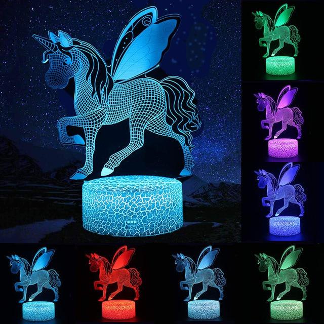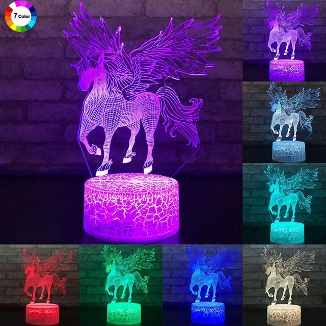 Lámpara infantil unicornio. Iluminación LED con control táctil. Hermosos colores para elegir.