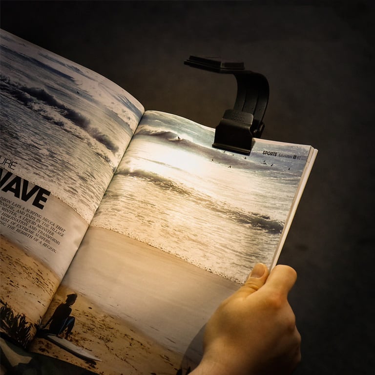 Lámpara LED práctica con carga USB y sujeción para libros, portátiles o lectores de libros.
