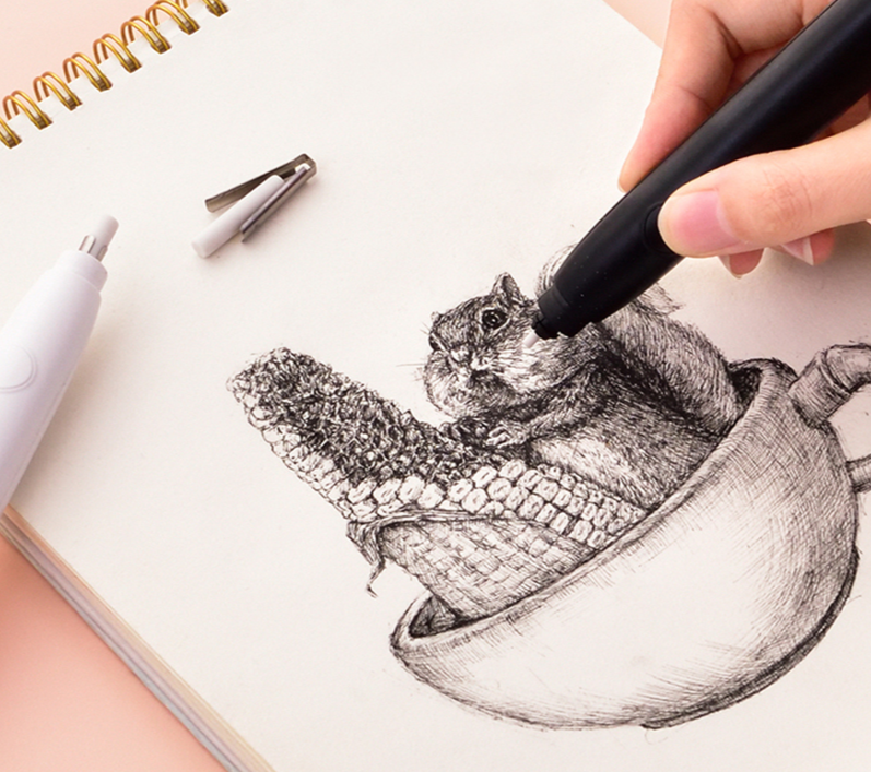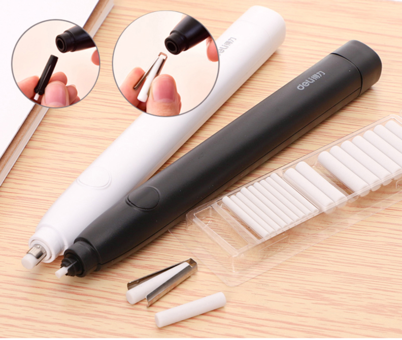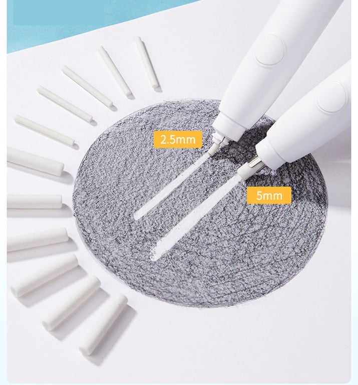 Goma eléctrica con múltiples recargas. Un gran aliado para dibujar con goma, pero sin duda también encontrará su uso en la oficina. Ideal como regalo. Se necesita una batería alcalina AAA, que no está incluida en el paquete.