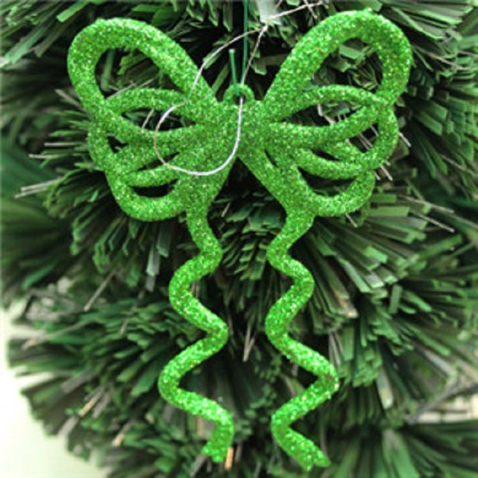 Moño decorativo con superficie brillante de purpurina.