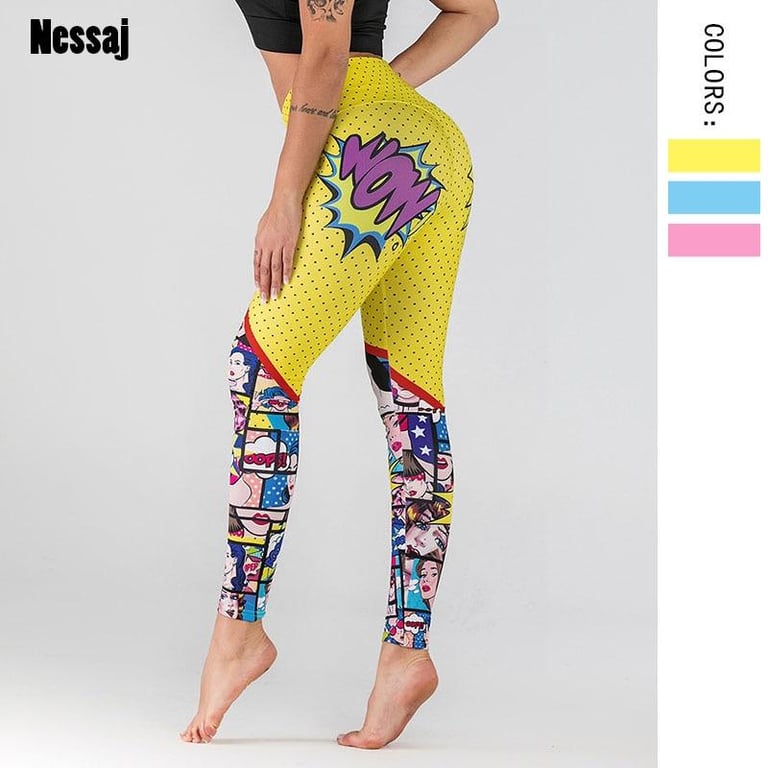 Leggings con un estampado divertido. Hechos de spandex. Los leggings están disponibles en varios colores.