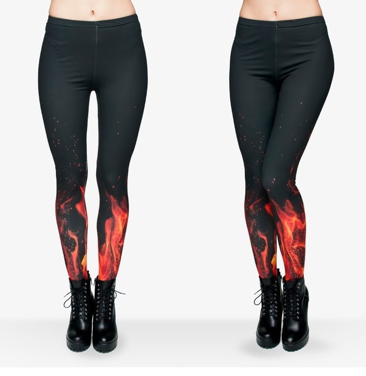 Estos leggings para mujer te encenderán, ya que tienen un estampado de llamas que salen de las piernas.