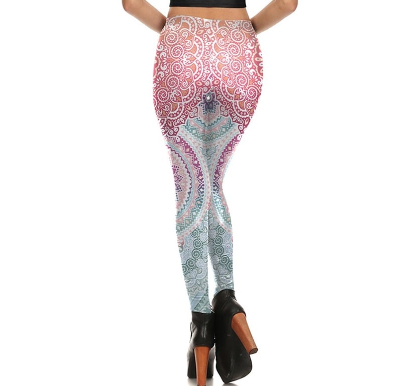 Leggings rosa hermosos con estampado de mandala. Estos leggings son ideales para yoga, deporte o tiempo libre.