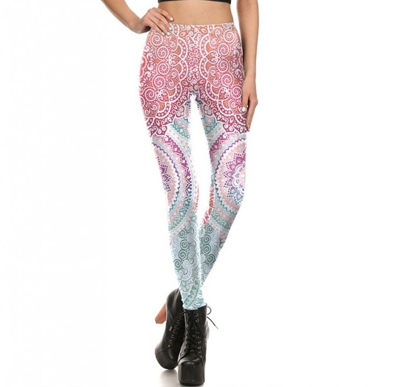Leggings rosas para mujer con estampado de mandala.