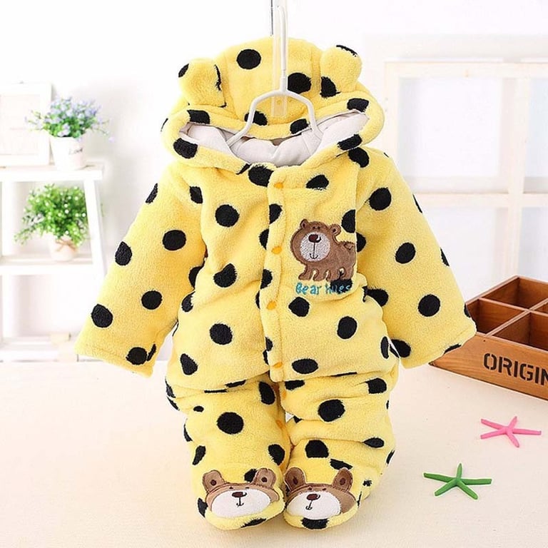 Un adorable mono de invierno, gracias al cual su bebé se sentirá cómodo y abrigado. No dude en elegir entre tres motivos disponibles.