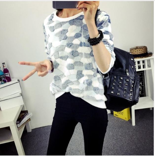 Linda sudadera de felpa para mujer en gris azulado para el invierno cálido