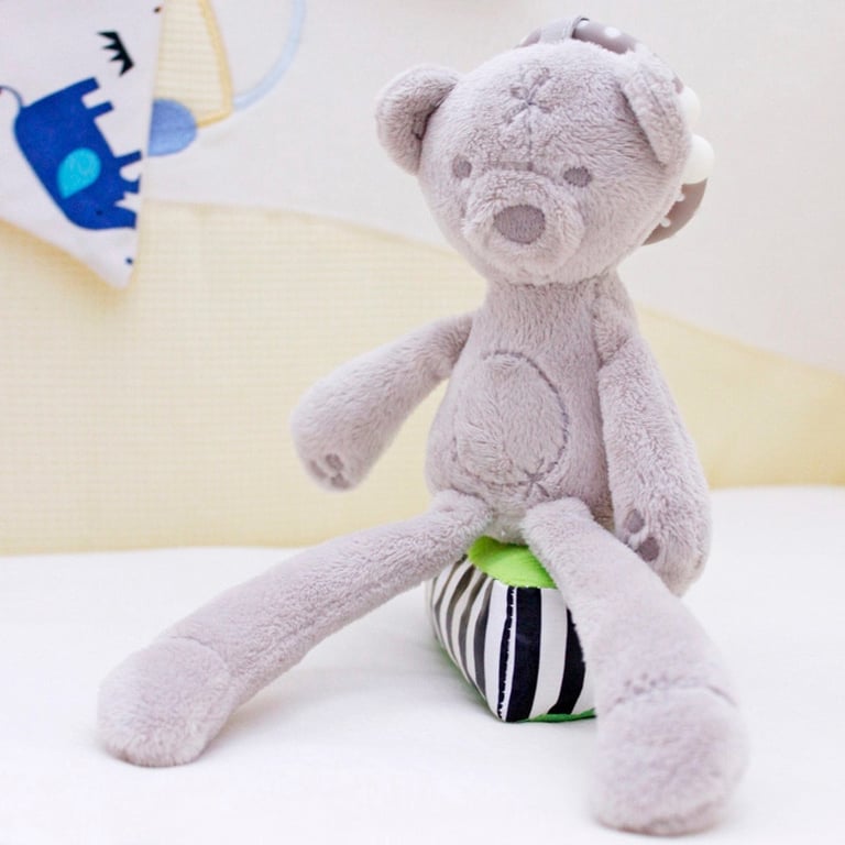 Este adorable juguete se puede sujetar a la cuna o al carrito. Y, por supuesto, también sirve como juguete de peluche. Puedes elegir entre el osito o el conejito. ¡De cualquier manera, ambos juguetes son absolutamente increíbles!