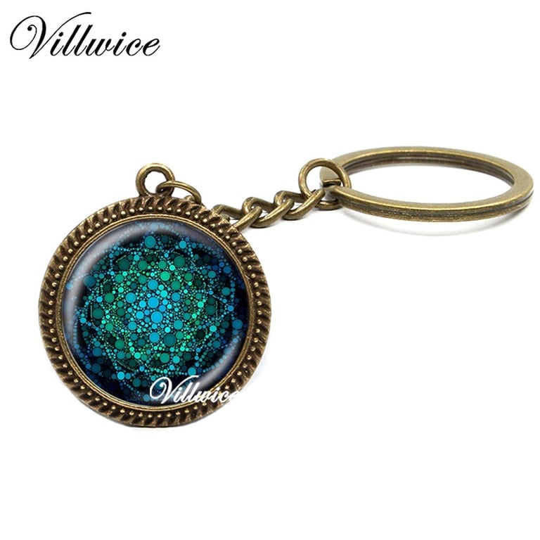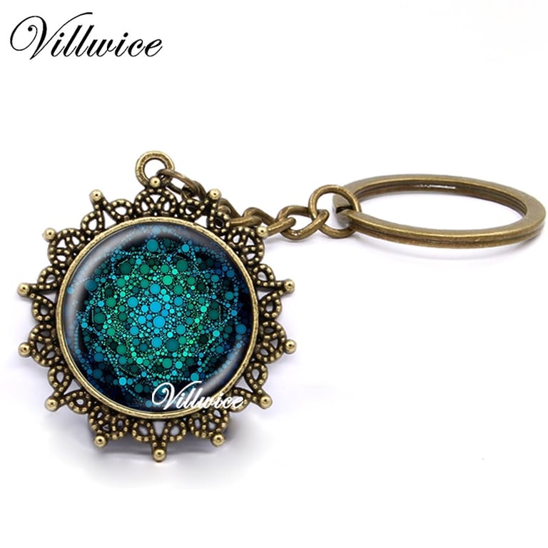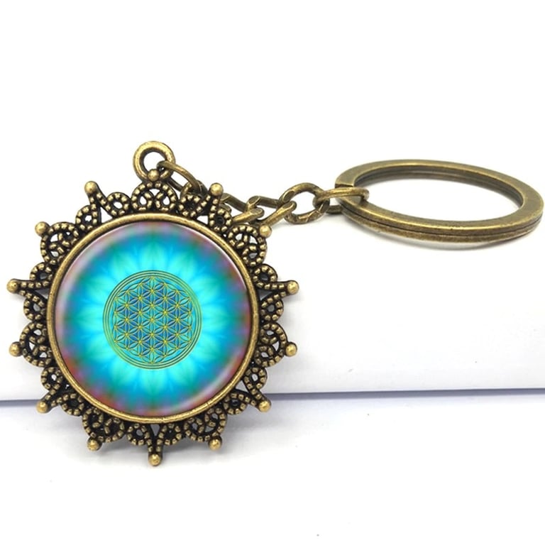 Llave redonda única con la mandala Flor de la Vida. Color azul.