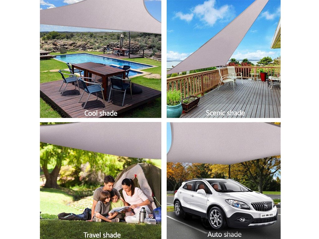 La sombrilla de alta calidad es ideal para proporcionar sombra en el balcón, jardín, piscina, camping y se puede usar fácilmente para cubrir cualquier área. La pantalla contra el sol también es adecuada como sombra para areneros, columpios, toboganes, etc. La lona solar ofrece posibilidades casi ilimitadas, por lo que se puede fijar fácilmente, por ejemplo, a árboles, postes, paredes de la casa, etc.