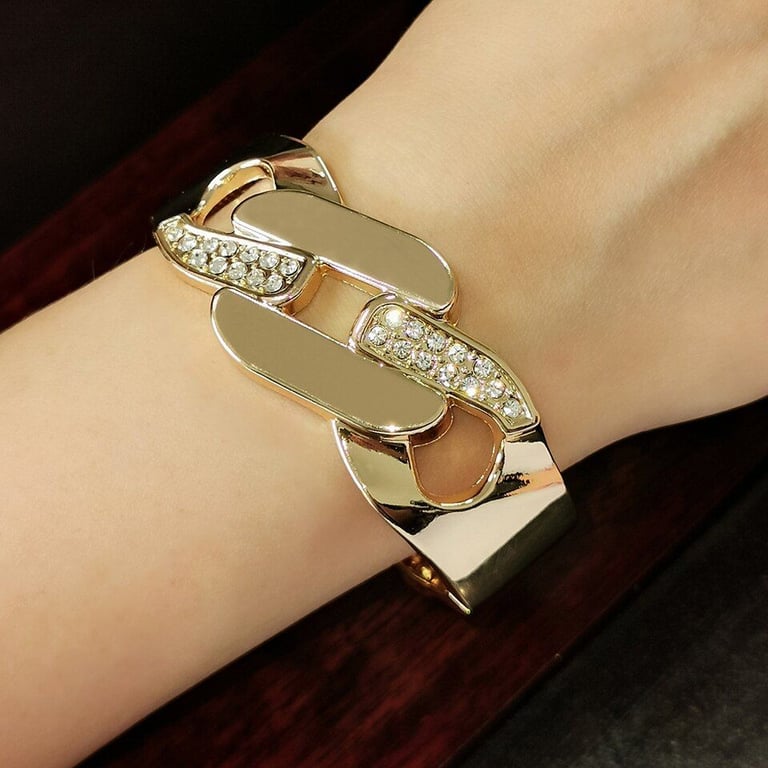 Robusta pulsera de clip para mujer en color dorado o plateado.