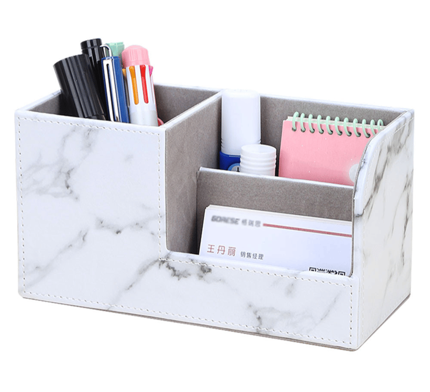 Soporte para utensilios de escritura en varios colores. Este elegante soporte con un diseño de mármol destacará en su escritorio.