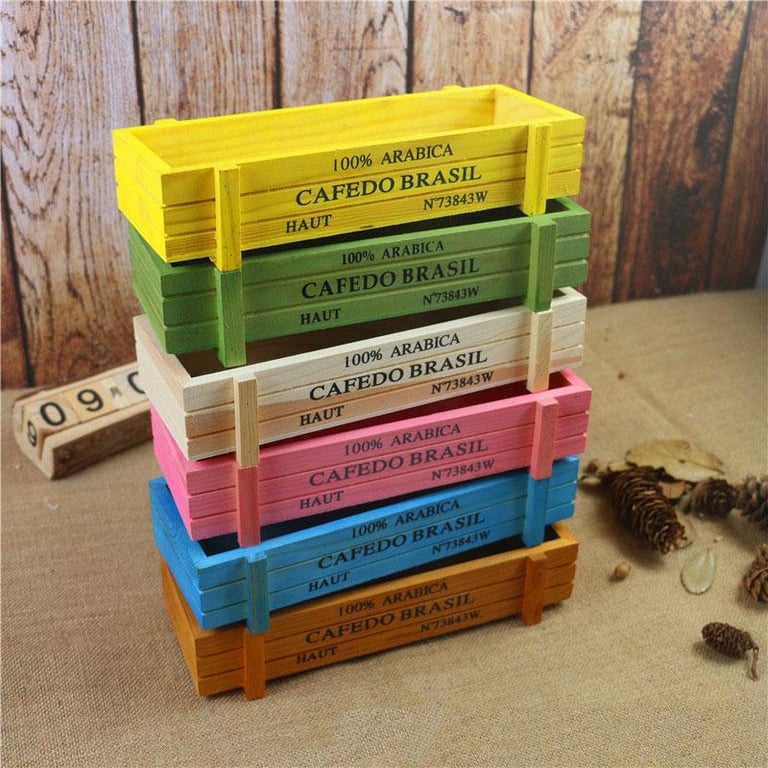 Maceta de madera, con apariencia de caja. Disponible en varios colores hermosos para elegir.
