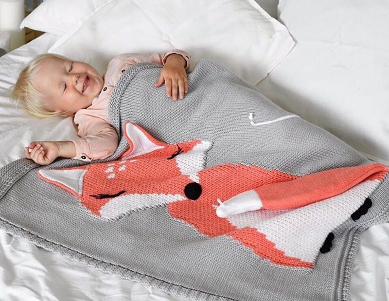 Manta de punto para niños con zorro