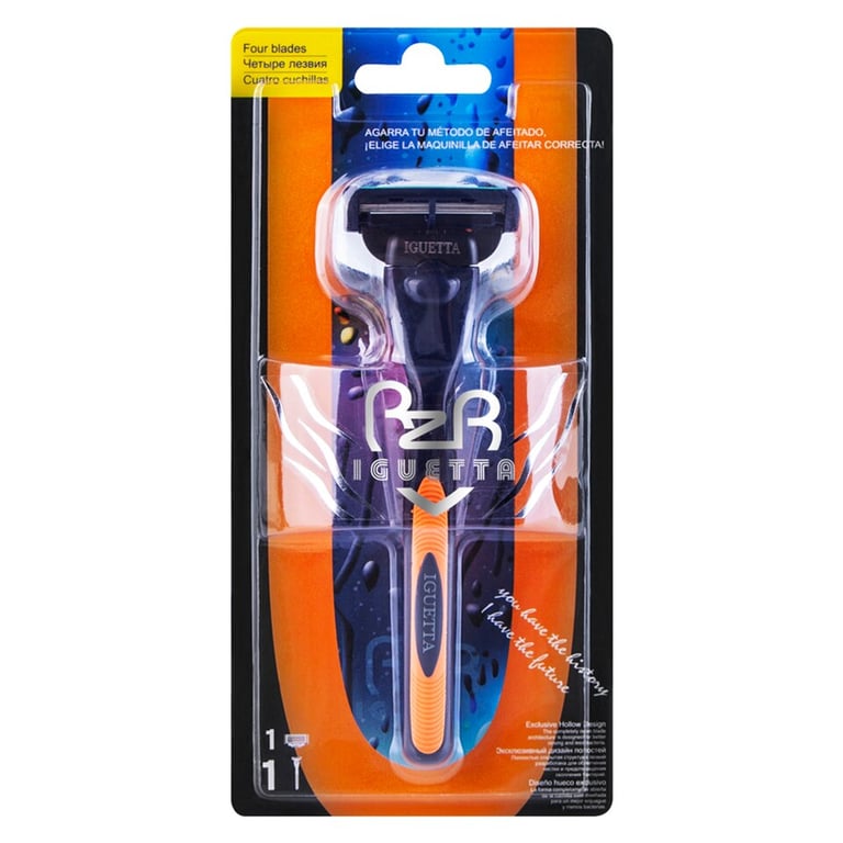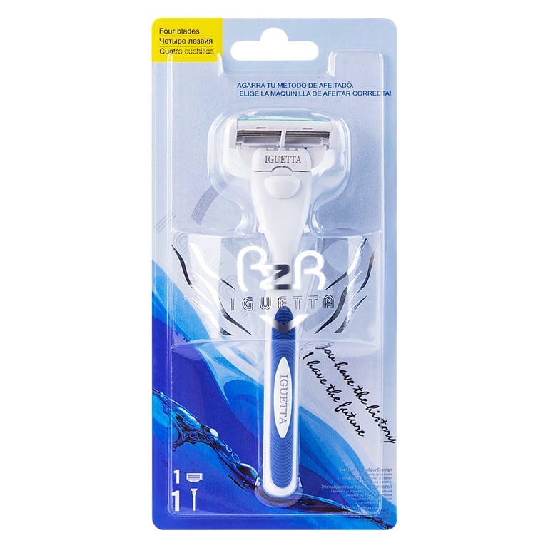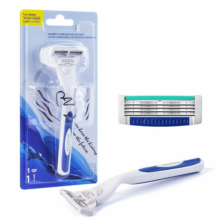 Máquina de afeitar para hombre Iguetta con cuatro cuchillas y cuchillas de repuesto.