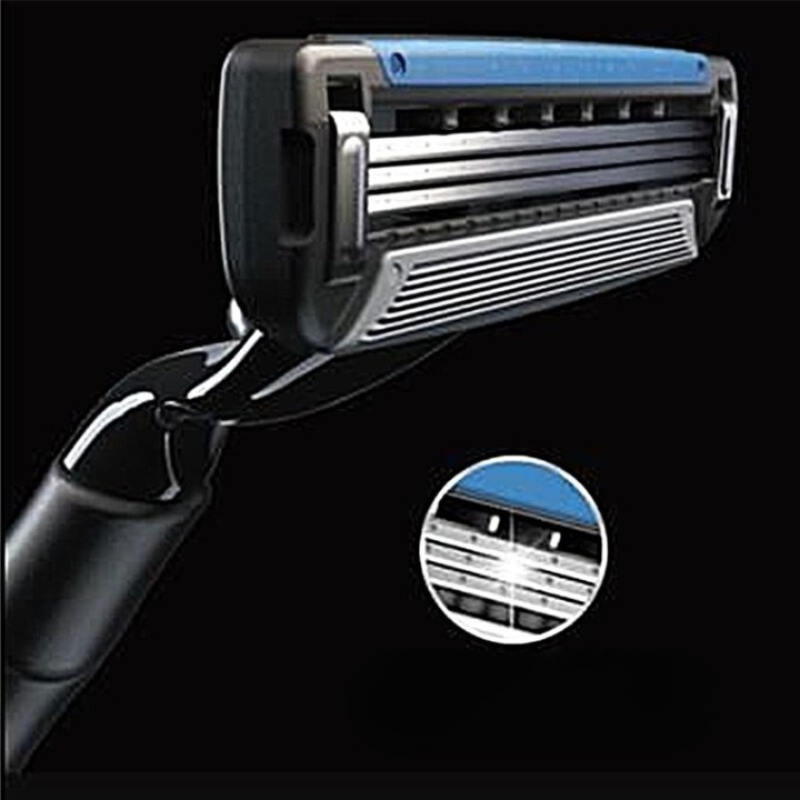 Sistema de afeitado revolucionario con tres hojas colocadas de manera especial para acercarse lo más posible a tu barba y afeitar con un solo movimiento de la manera más suave.