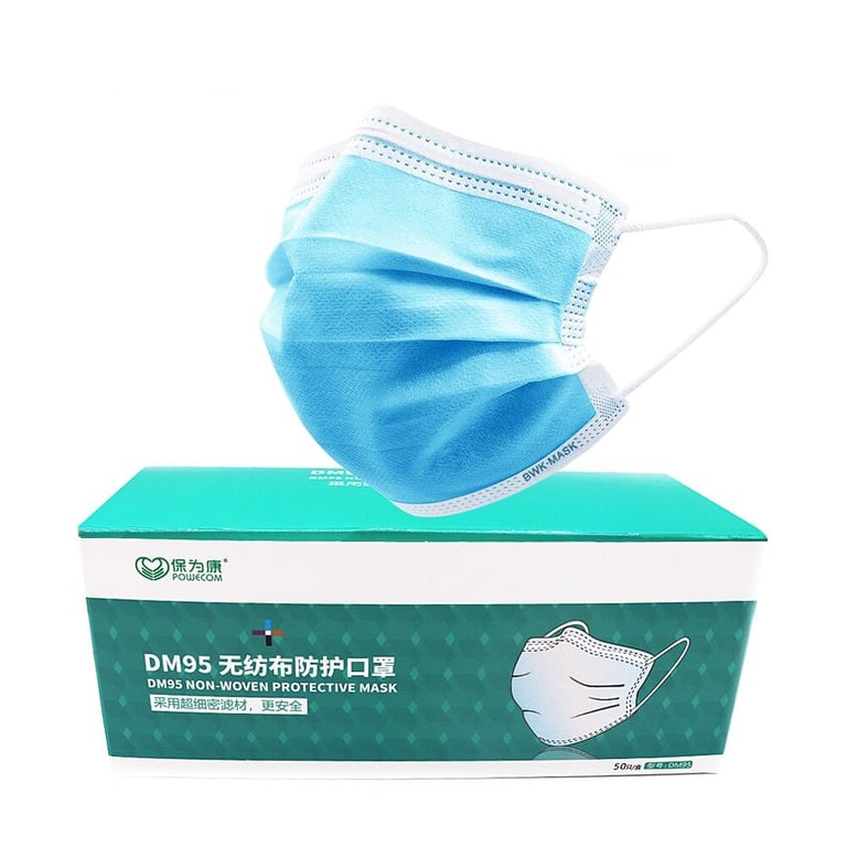 Mascarilla protectora de tres capas para la boca en varios colores.