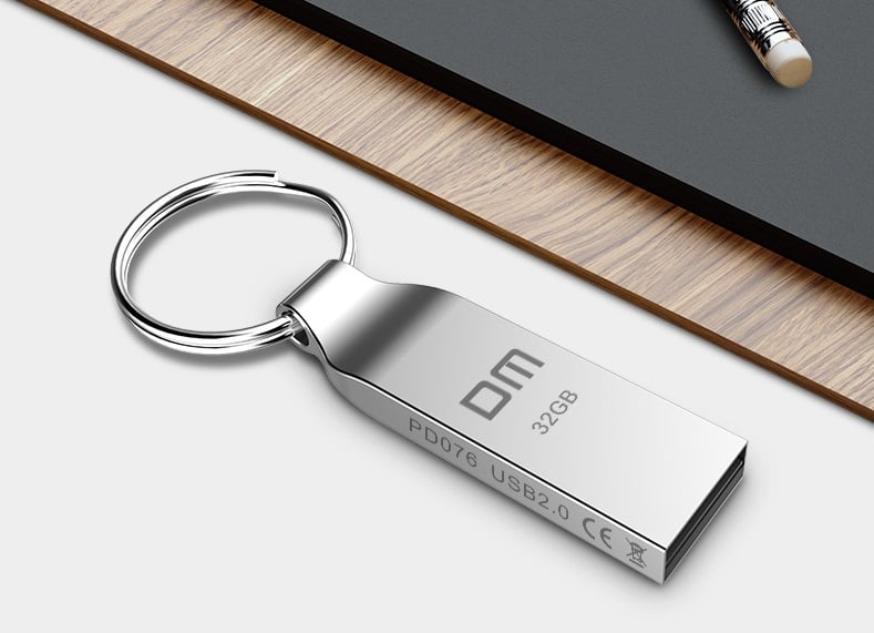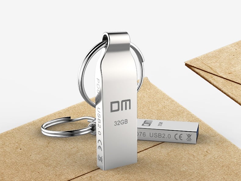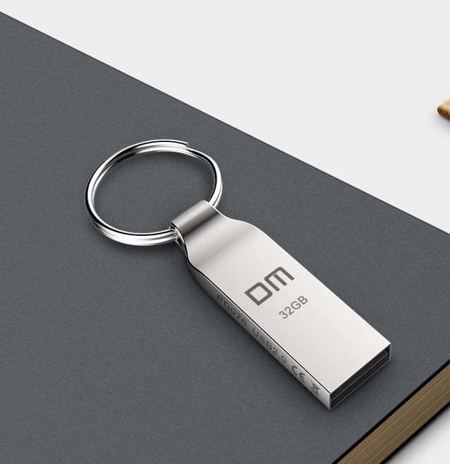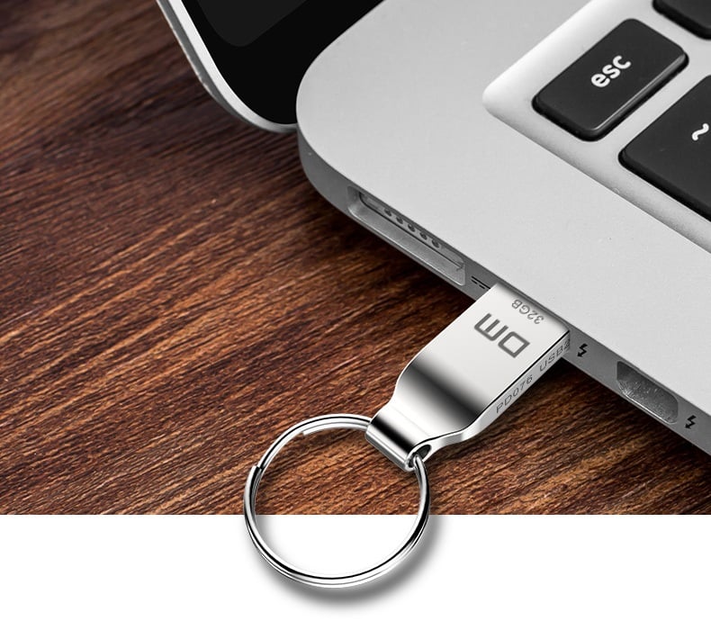 Memoria USB en color plateado.
