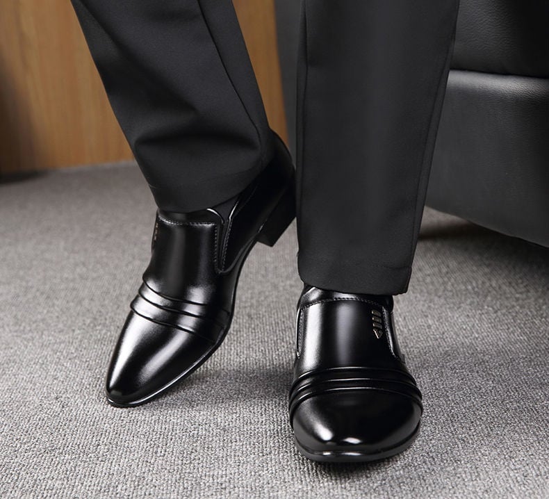 Los mocasines negros para hombre con un ligero tacón son adecuados para eventos sociales o para bailar.