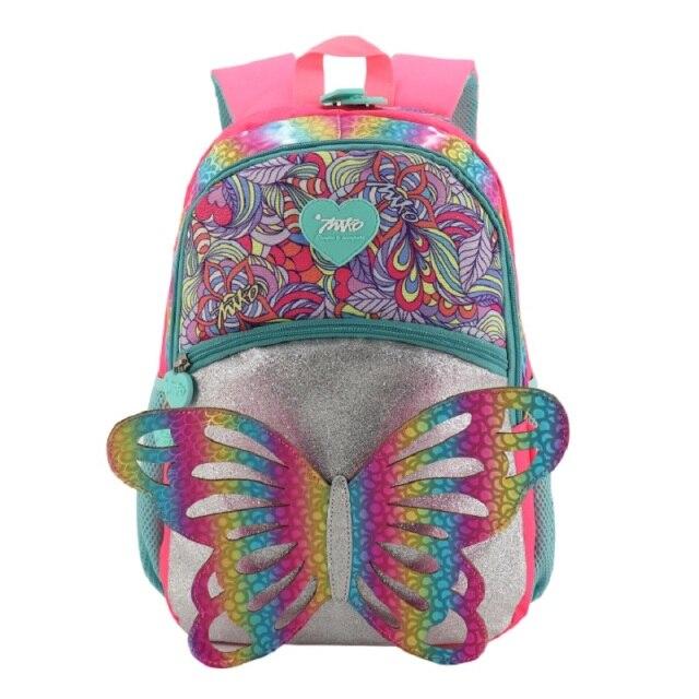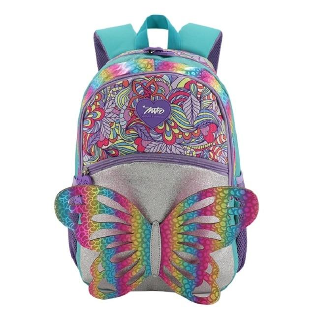 Bonito mochila de niña para la escuela. La mochila tiene una gran mariposa en ella. Diseño muy original.